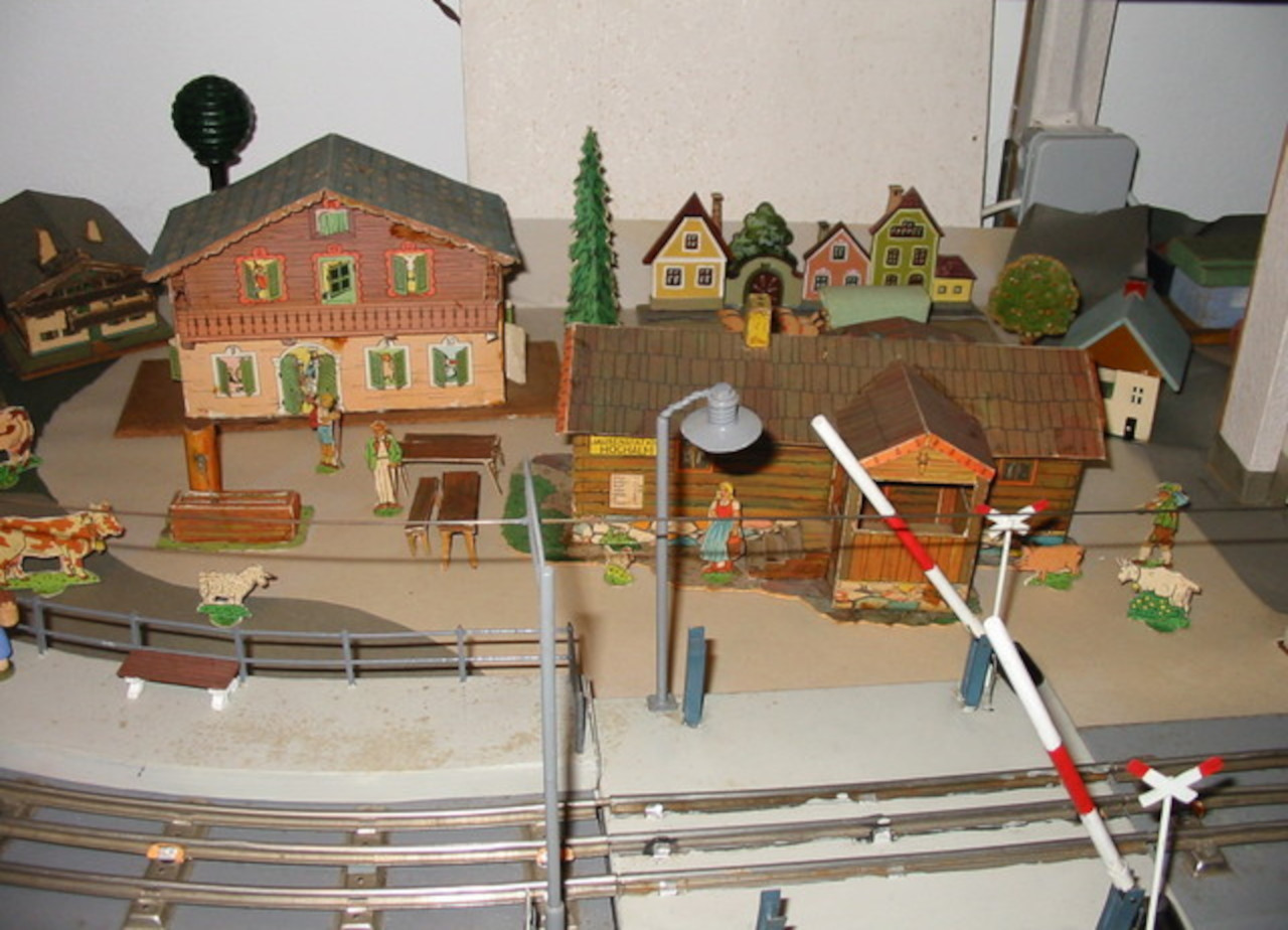 (##) Die Papierhäuser beim Bahnügergang der Modelleisenbahn